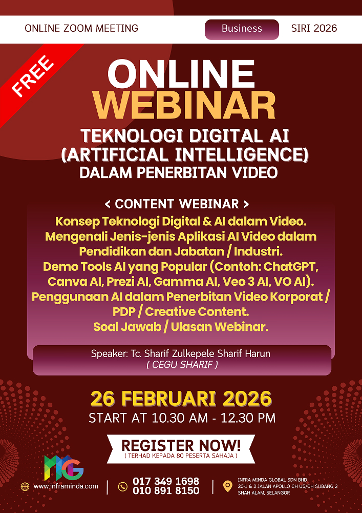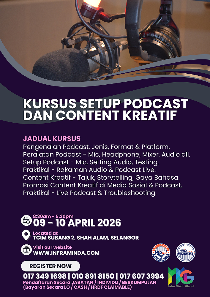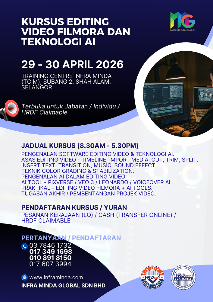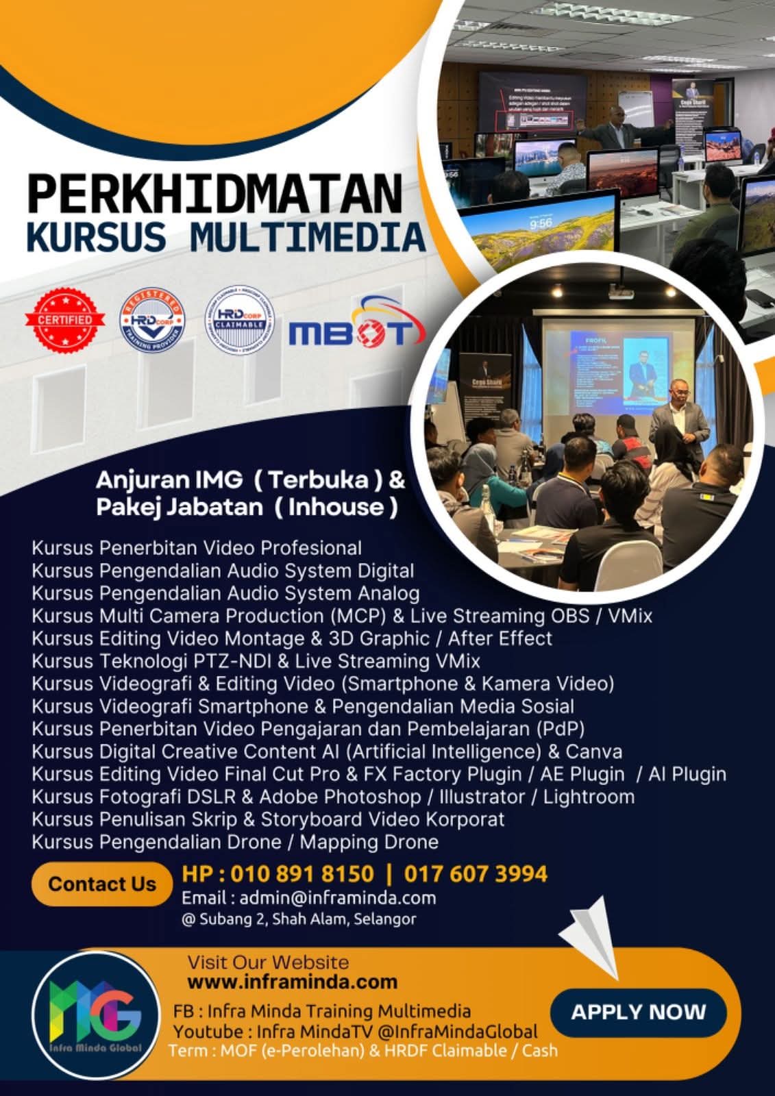 Berikut Jadual Kursus Multimedia anjuran Infra Minda Global untuk Siri 2026 !